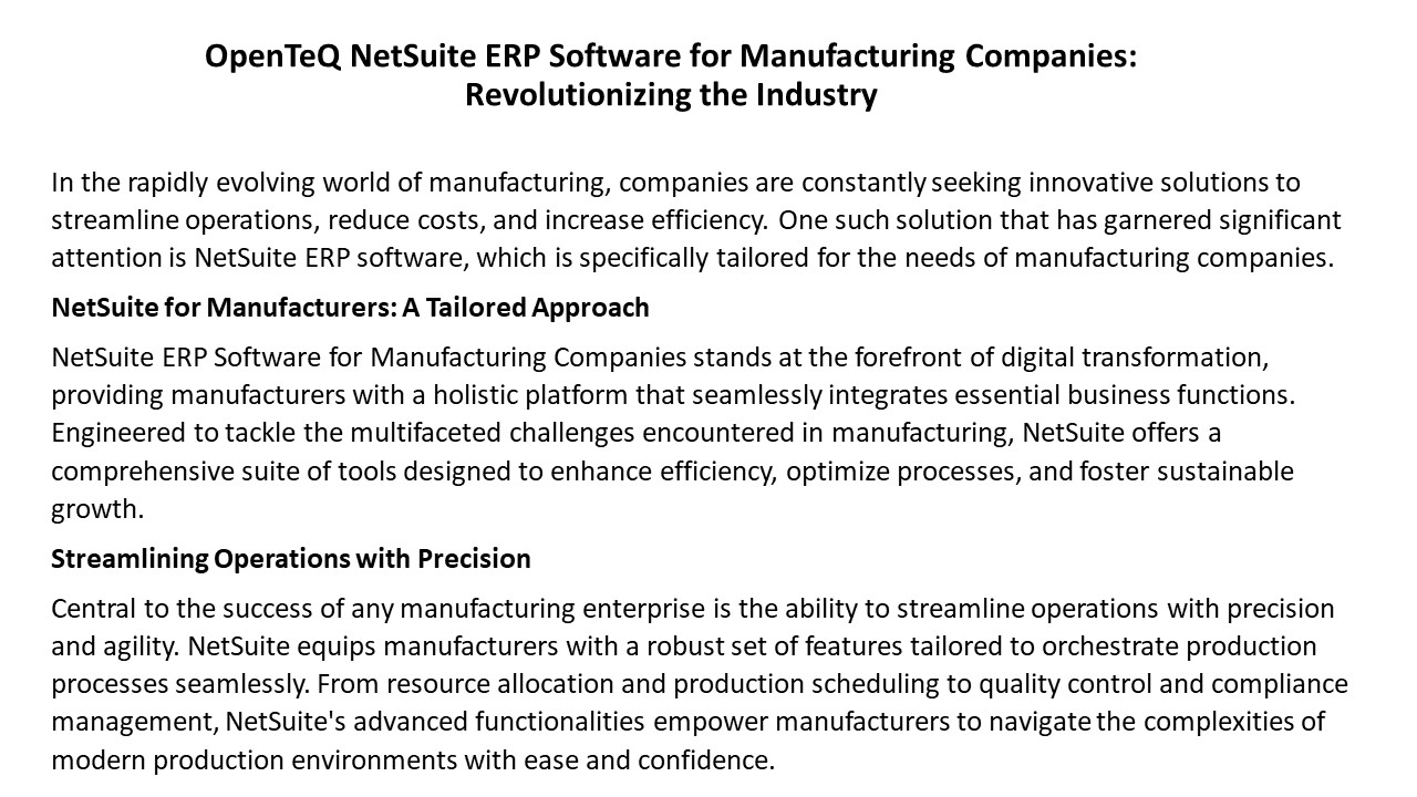 Title: OpenTeQ NetSuite for Manufacturing | NetSuite for Manufacturers |