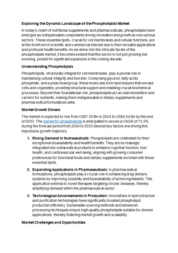 Title: Phospholipids Market Forecast and Competitive Landscape
