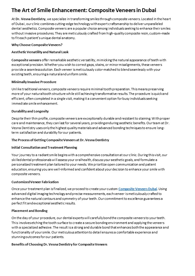 Title: The Art of Smile Enhancement Composite Veneers in Dubai