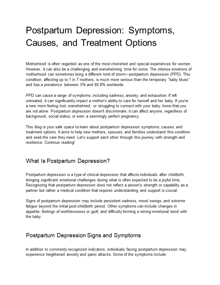 Title: Postpartum Depression Symptoms, Causes And Treatment Options