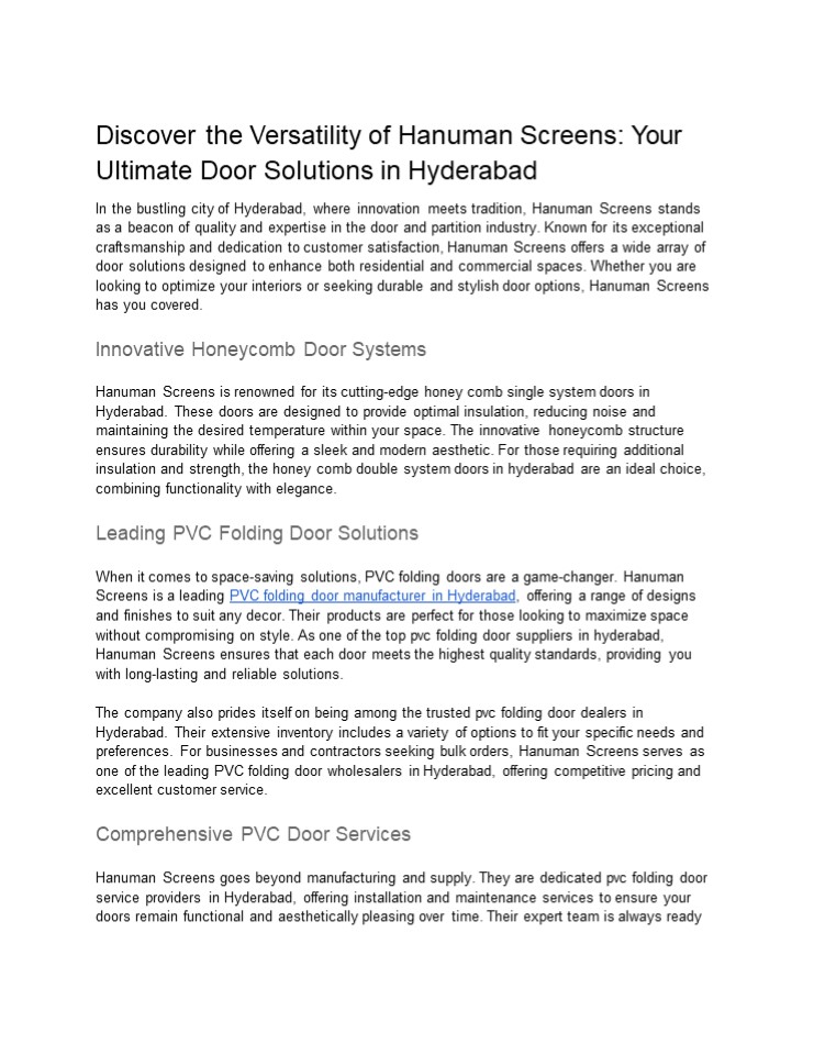 Title: Discover the Versatility of Hanuman Screens: Your Ultimate Door Solutions in Hyderabad
