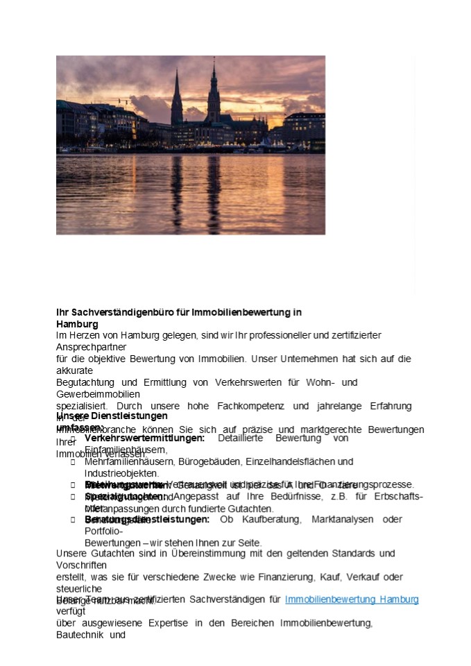 für Immobilienbewertung Hamburg verfügt über