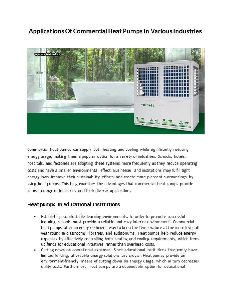Title: Applications Of Commercial Heat Pumps In Various Industries