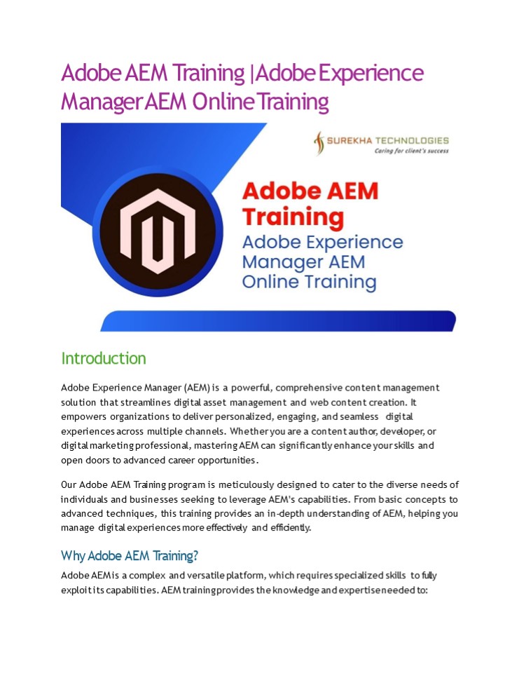 competitive digital landscape. - Flexible Learning Options Our Adobe AEM Training