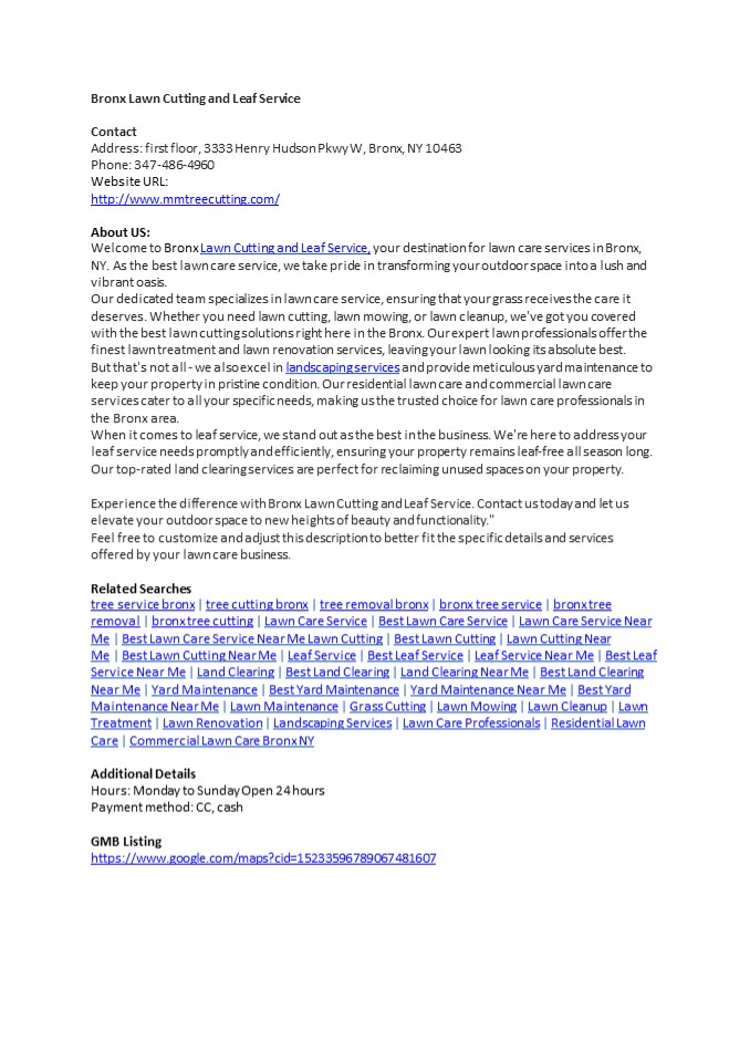Title: Bronx Lawn Cutting and Leaf Service NY