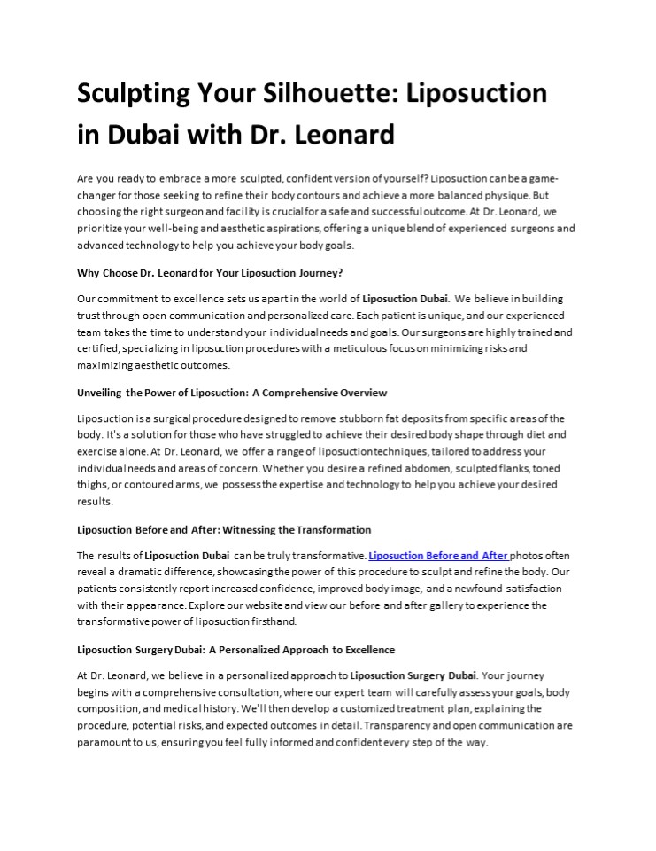 Title: Sculpting Your Silhouette: Liposuction in Dubai with Dr. Leonard