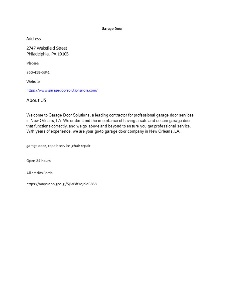 Orleans, LA. garage door, repair service ,chair