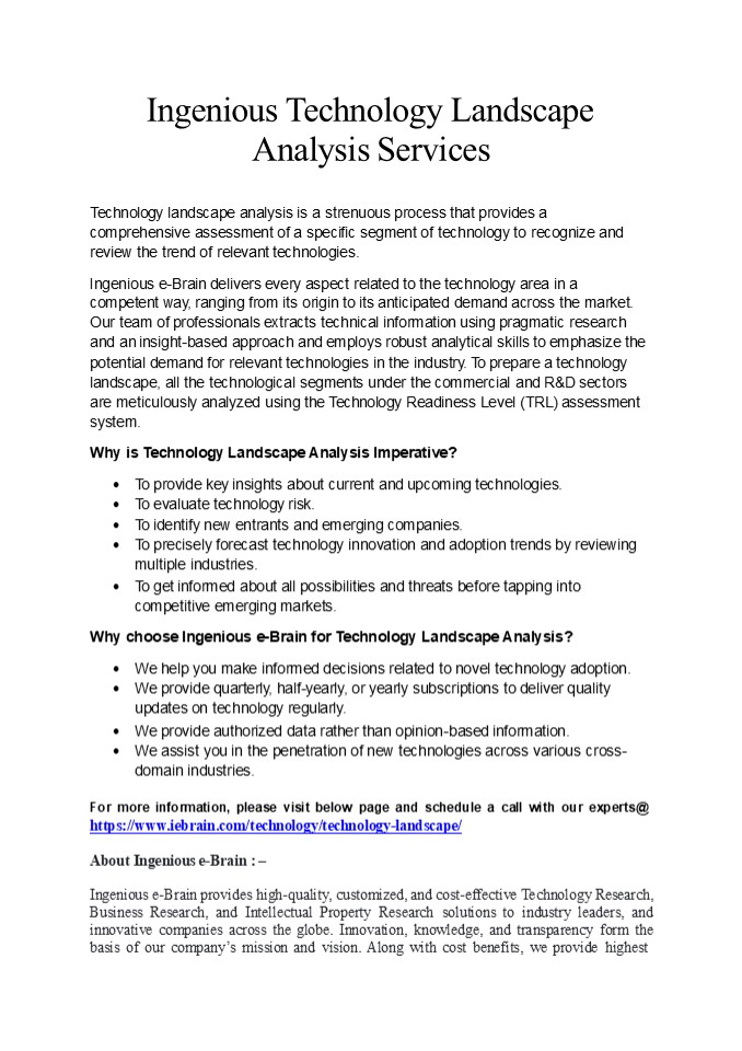 Readiness Level (TRL) assessment system. - Why is Technology Landscape Analysis Imperative?