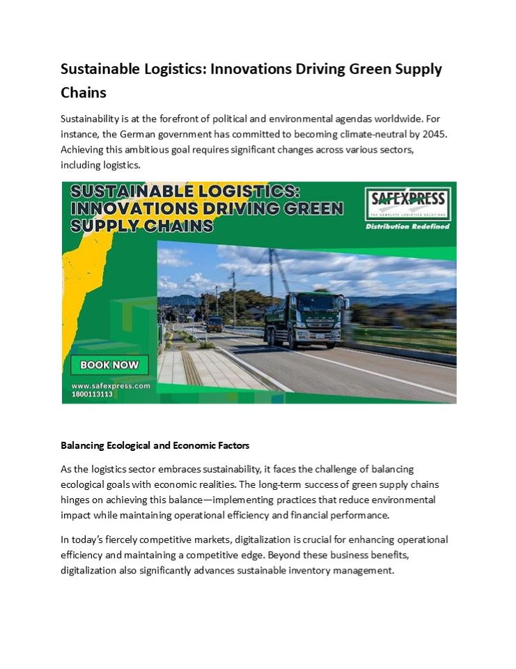 Title: Sustainable Logistics: Innovations Driving Green Supply Chains. (1)