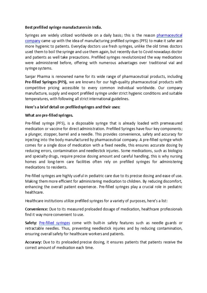 Title: Prefilled injection manufacturer in India. (1)