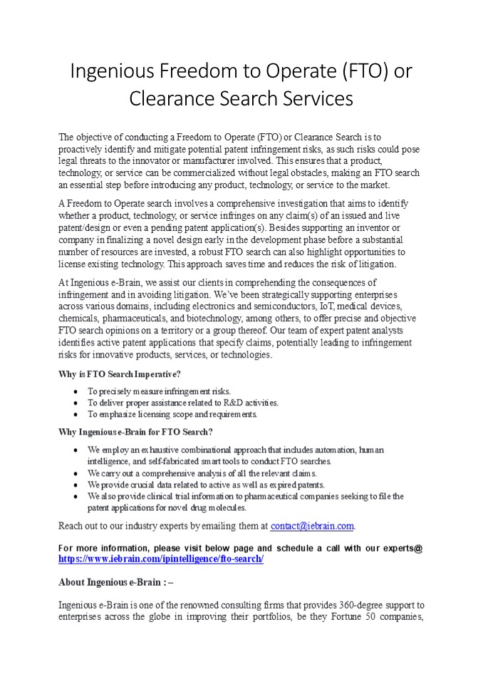 1Ingenious Freedom to Operate (FTO) or Clearance