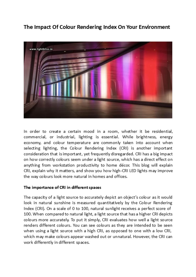 Title: The Impact Of Colour Rendering Index On Your Environment