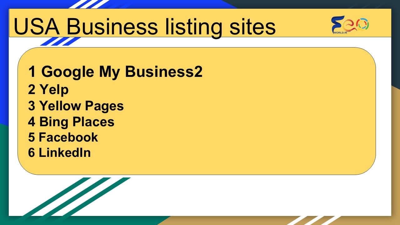 1 Google My Business2 2 Yelp 3 Yellow Pages 4