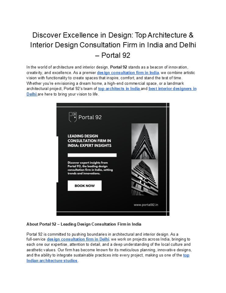 Title: Discover Excellence in Design: Top Architecture & Interior Design Consultation Firm in India and Delhi – Portal 94