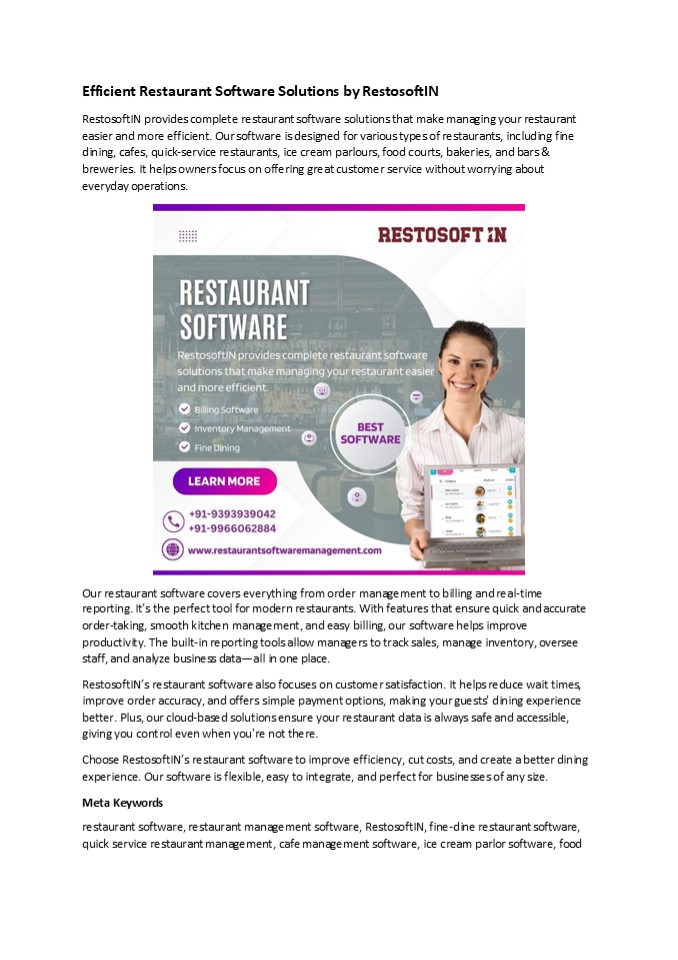 Title: Efficient Restaurant Software Solutions by RestosoftIN