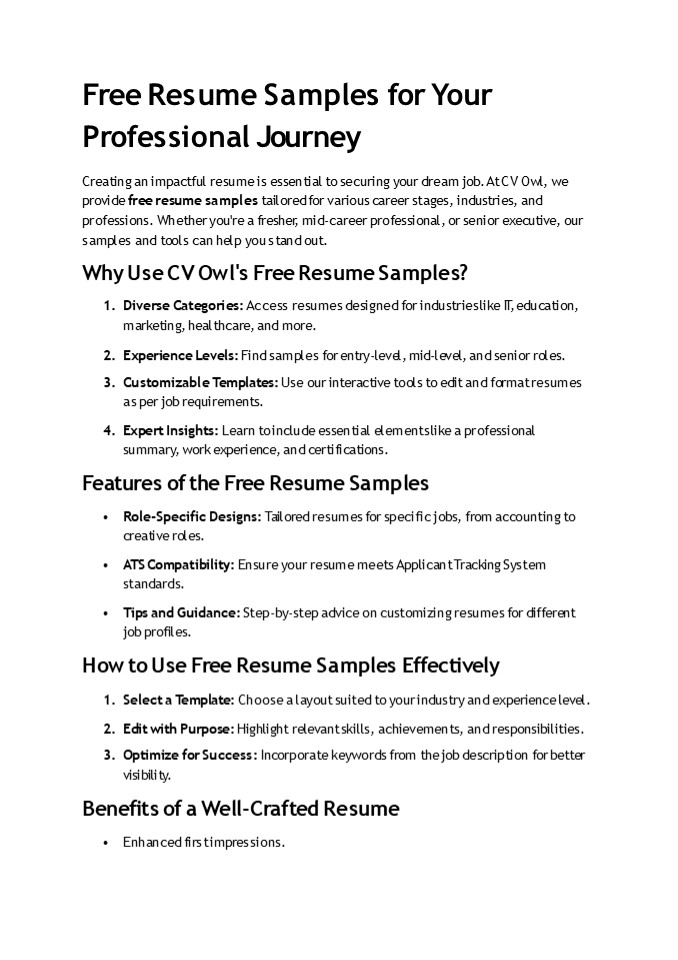 Title: Free Resume Samples for Your Professional Journey (1)