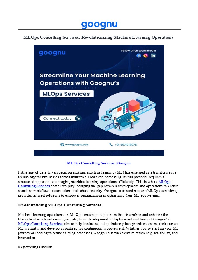 operations. - The Goognu Advantage in MLOps Consulting Services