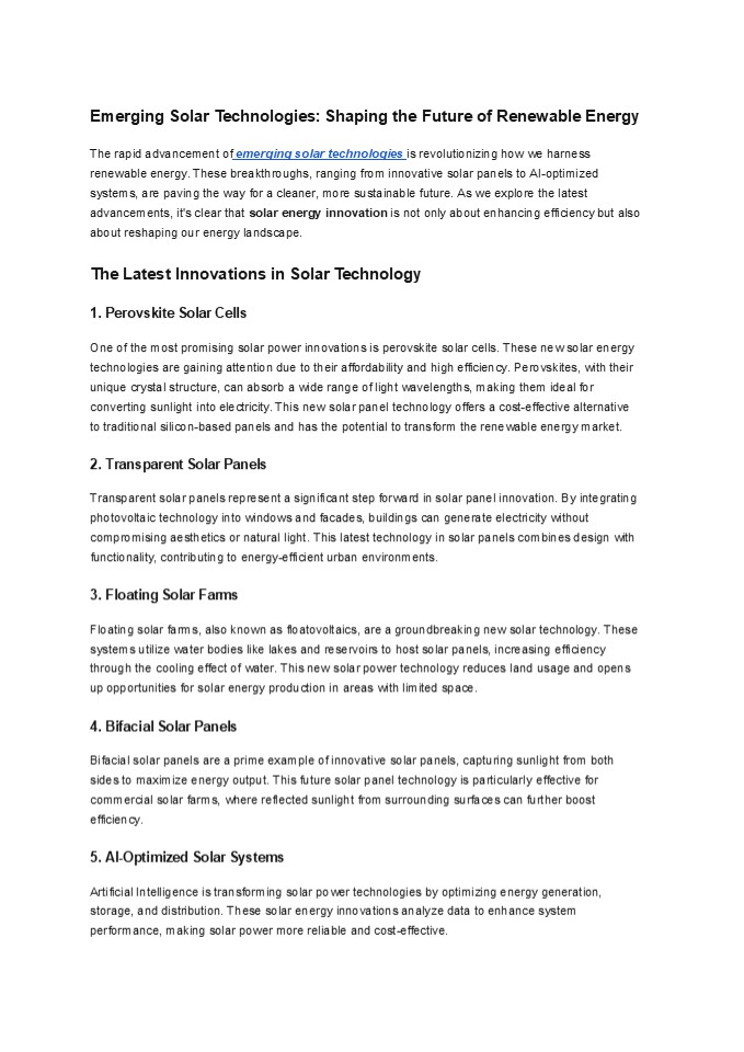 Title: Emerging Solar Technologies: Shaping the Future of Renewable Energy