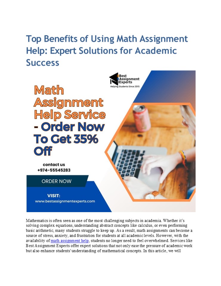 and reliable solutions. - At Best Assignment Experts, the team of math