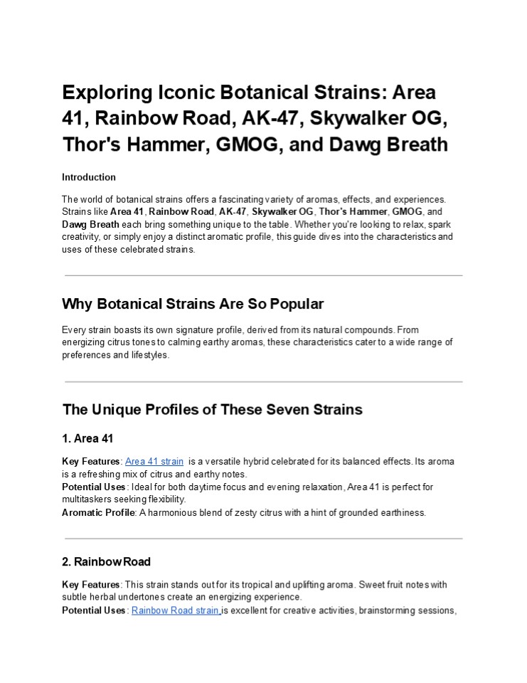 - Strains like Thors Hammer, Area 41, and Rainbow