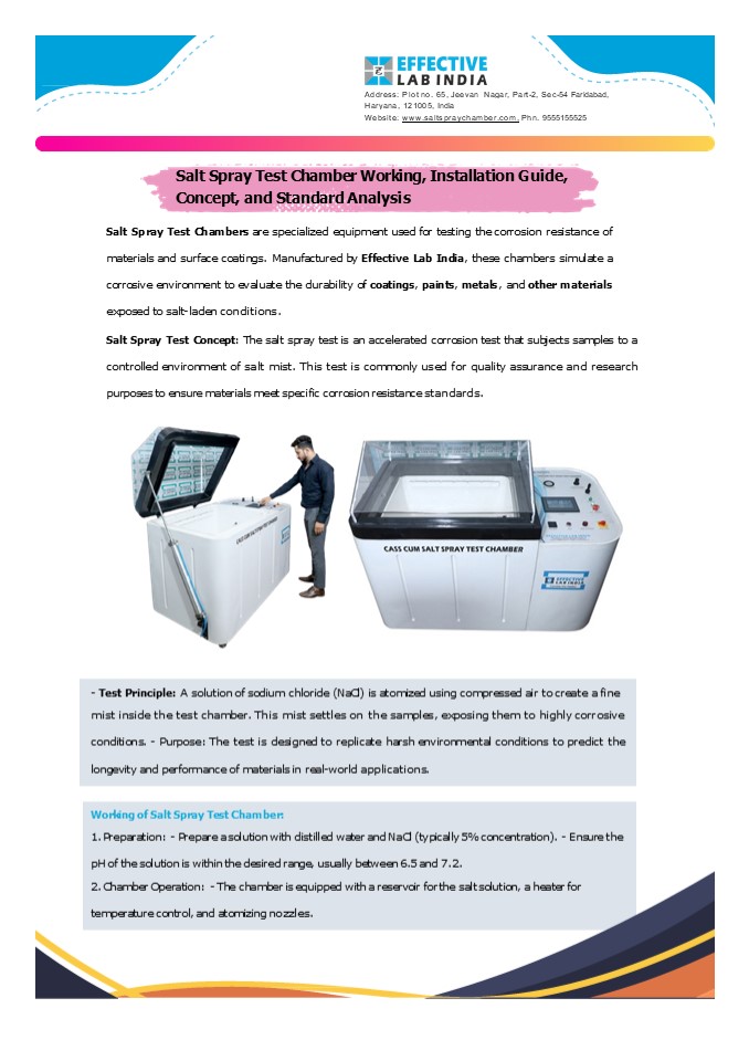 for proper functioning. - Standard Analysis The salt spray test adheres to