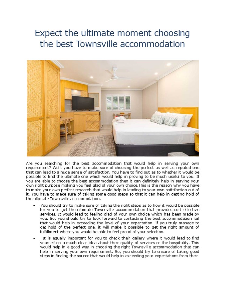 Title: Expect the ultimate moment choosing the best Townsville accommodation
