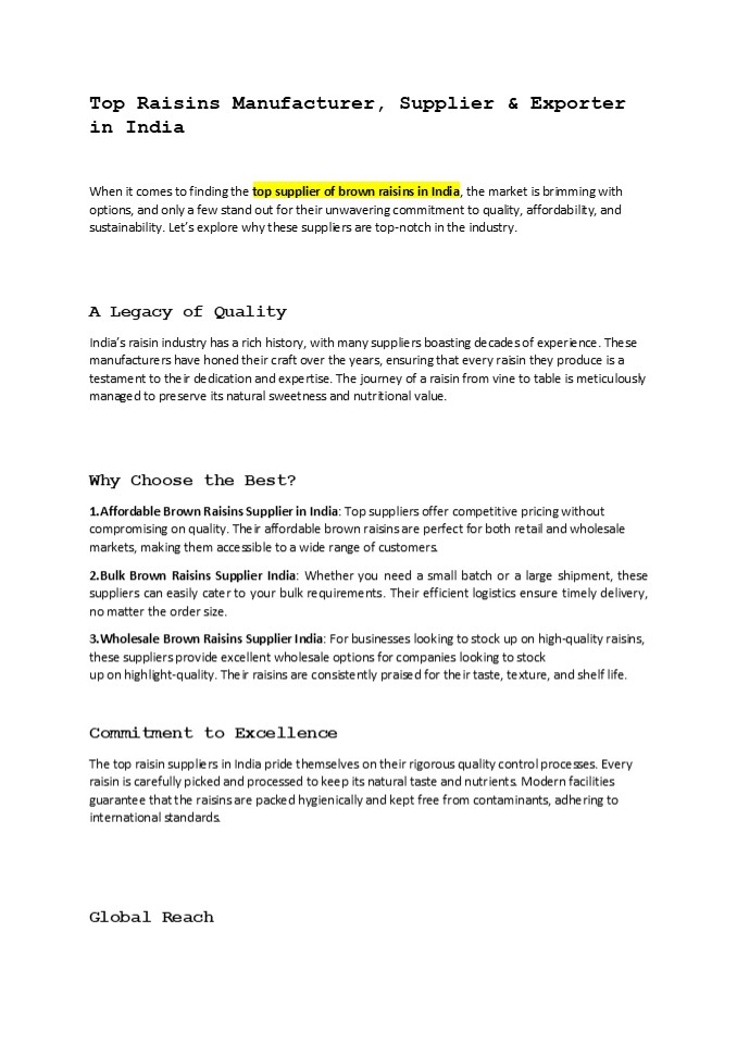 Title: Raisin Manufacturer, Exporter & Supplier India - Dhanraj Enterprise