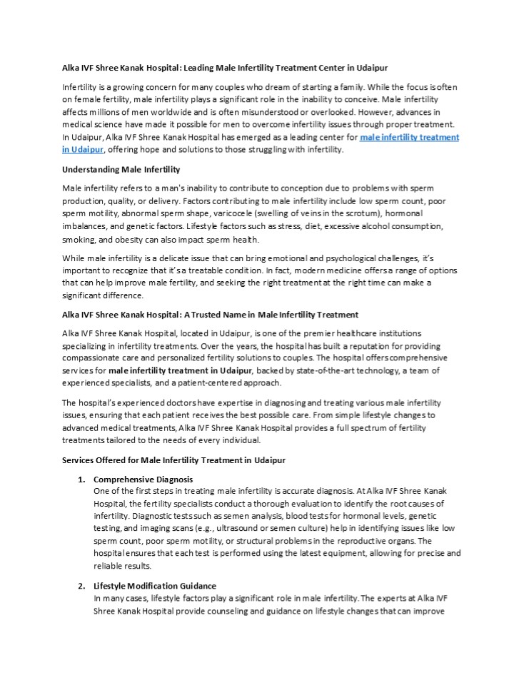 treatment. In Udaipur, Alka IVF Shree Kanak