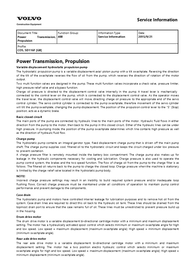 Title: VOLVO SD116F SINGLE-DRUM ROLLER Service Repair Manual Instant Download