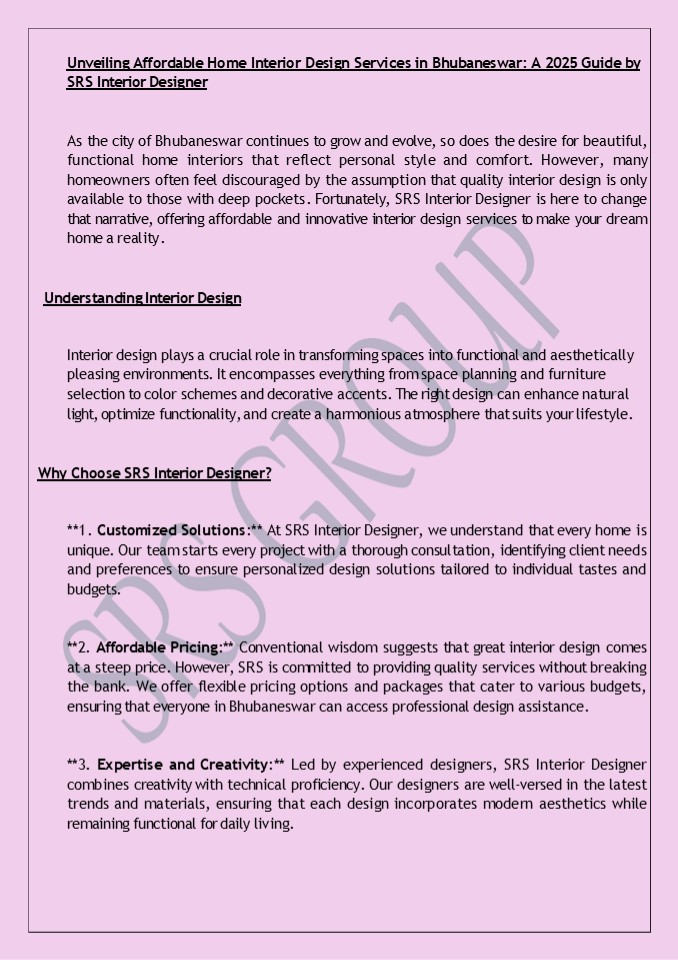 Title: Best Interior Designers in Bhubaneswar-SRS GROUP