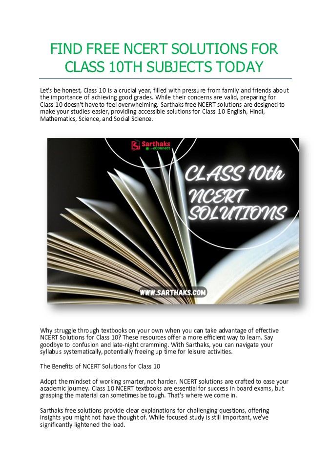 Title: Find Free NCERT Solutions for Class 10th Subjects Today