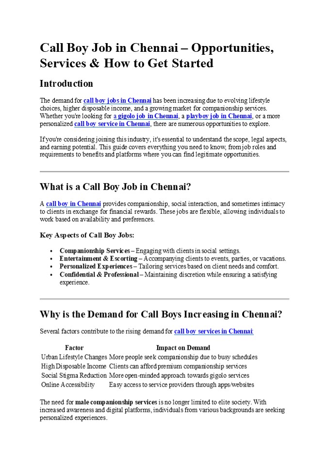 - What is a Call Boy Job in Chennai?