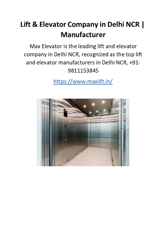 Title: Lift & Elevator Company in Delhi NCR | Manufacturer