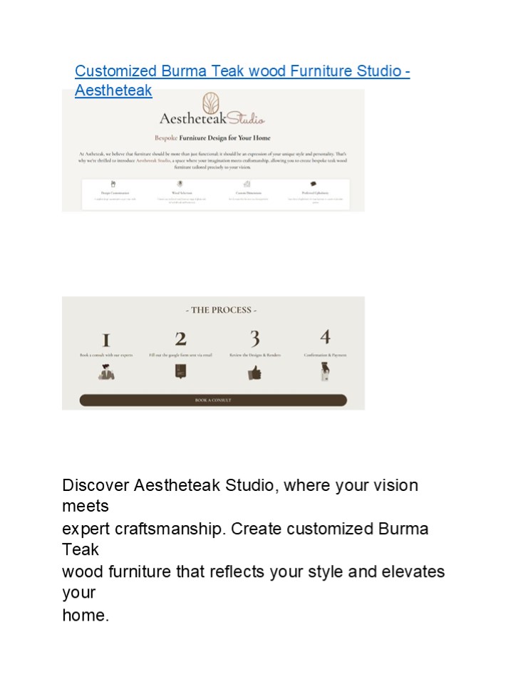 Title: Customized Burma Teak wood Furniture Studio - Aestheteak