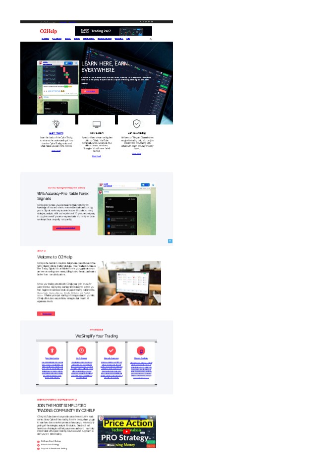 Free Mentorship You get Mentorship from several years of quali ed experience, our highly experienced analysts and tutors offer the best insights and Market news in Stocks, Indices, Commodities and more, O2help has gathered the best in free classes in the industry. 24/7 Support We are always ready to help you and support you no matter what time you are contacting us. Even if you facing deposit withdraw or any other technical issue. You can contact us on our TELEGRAM for quick reply. Always providing you our best support. Signals Accuracy When you join into our FREE VIP group. We value your time and money. We do our best analysis to generate a signal where we can trade together and make good pro t. Always try to maintain our signals accuracy more then 95 in our each VIP Session. ? Market Analysis Trade with Con dence by nancial experts and Analysts. There are innumerable ways to analyze the Forex market, but its goal is the same trying to predict where the price is headed next. Technical analysis, Fundamental analysis and Sentiment analysis.