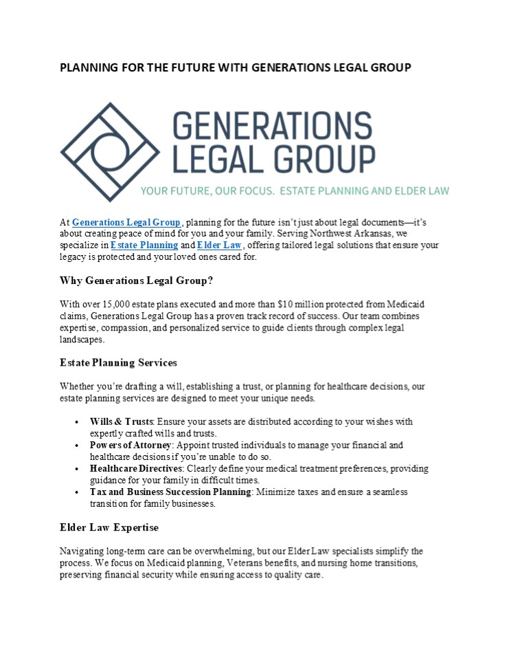 - At Generations Legal Group, planning for the