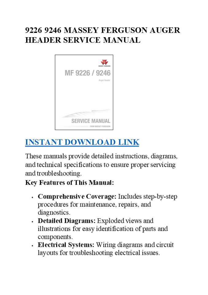 Title: 9226 9246 MASSEY FERGUSON AUGER HEADER SERVICE MANUAL