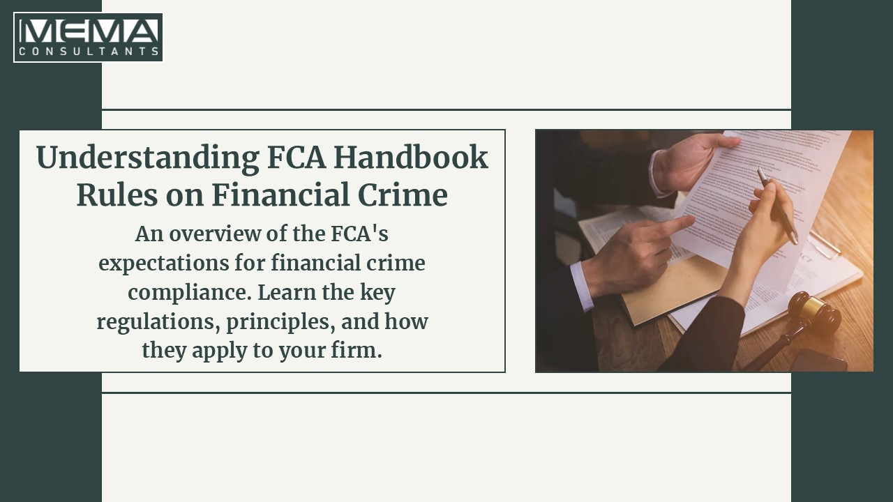 Title: Financial Crime Compliance: Navigating the FCA Handbook Rules.