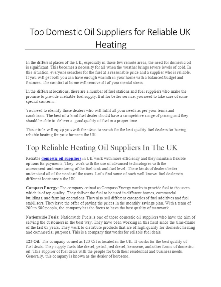 Title: Top Domestic Oil Suppliers for Reliable UK Heating