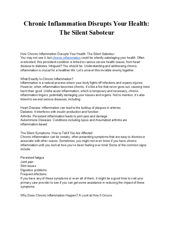 The Silent Saboteur - You may not see it, but chronic inflammation