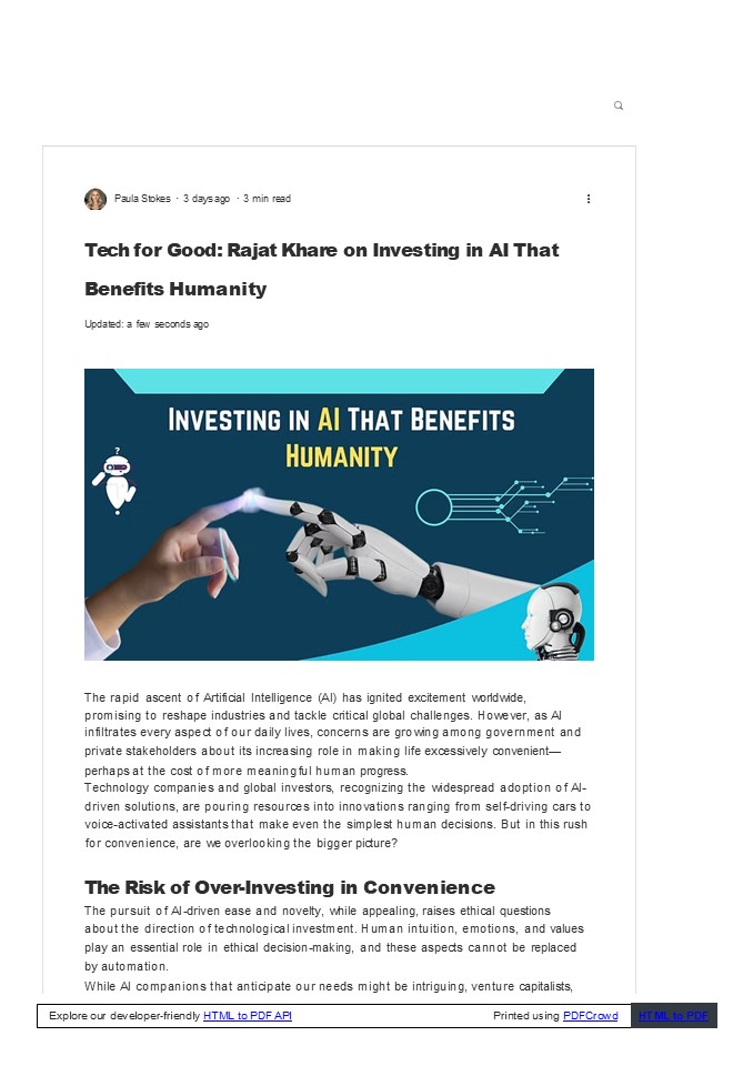 Tech for Good Rajat Khare on Investing in AI