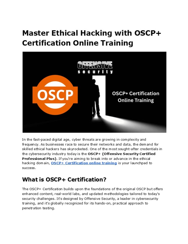 Title: Master Ethical Hacking with OSCP+ Certification Training