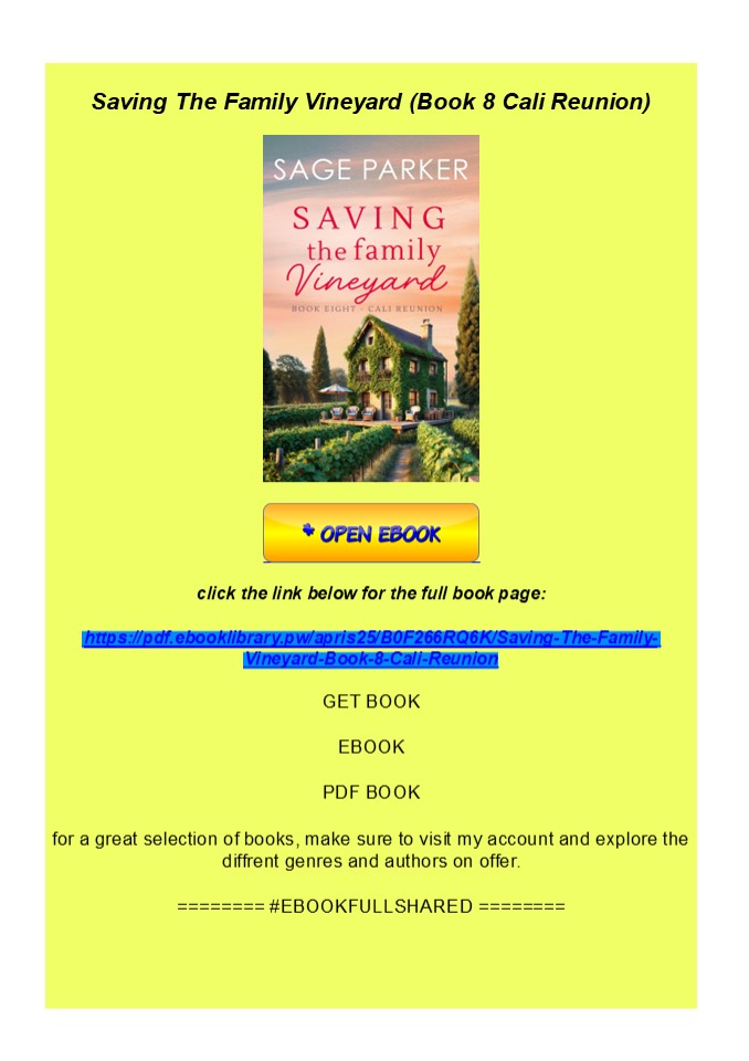 READ Saving The Family Vineyard (Book 8 Cali Reunion) PowerPoint PPT Presentation