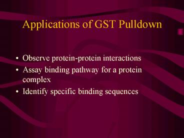 Applications of GST Pulldown PowerPoint PPT Presentation