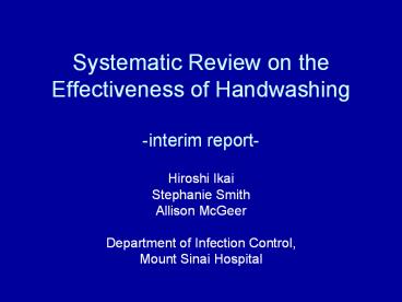 <Notice: Removed> Systematic Review on the Effectiveness of Handwashing -interim report- PowerPoint PPT Presentation