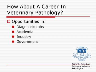 Title: How About A Career In Veterinary Pathology