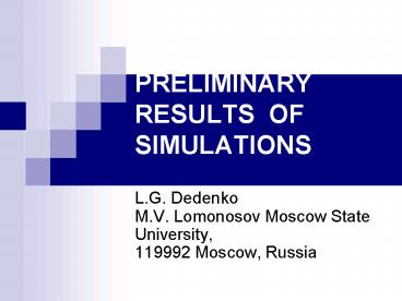 PRELIMINARY RESULTS OF SIMULATIONS PowerPoint PPT Presentation