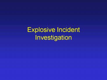 Explosive Incident Investigation PowerPoint PPT Presentation