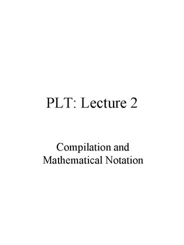 PLT: Lecture 2 PowerPoint PPT Presentation