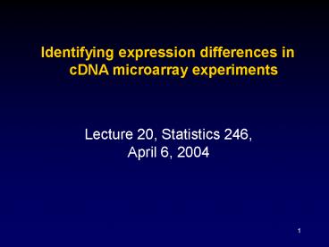 <Notice: Removed> The second-simplest cDNA microarray data analysis problem PowerPoint PPT Presentation
